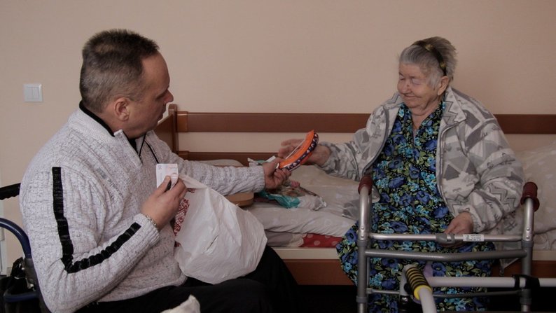 У Вінниці в обласному пансіонаті для людей з інвалідністю та осіб похилого віку працює соціальний працівник, який і сам є його мешканцем. В’ячеслав Коновалов 10 років тому отримав травму на виробництві й відтоді пересувається на кріслі колісному. Але це не заважає йому щодня виконувати десятки замовлень підопічних, які через вік або стан здоров’я прикуті до ліжок.