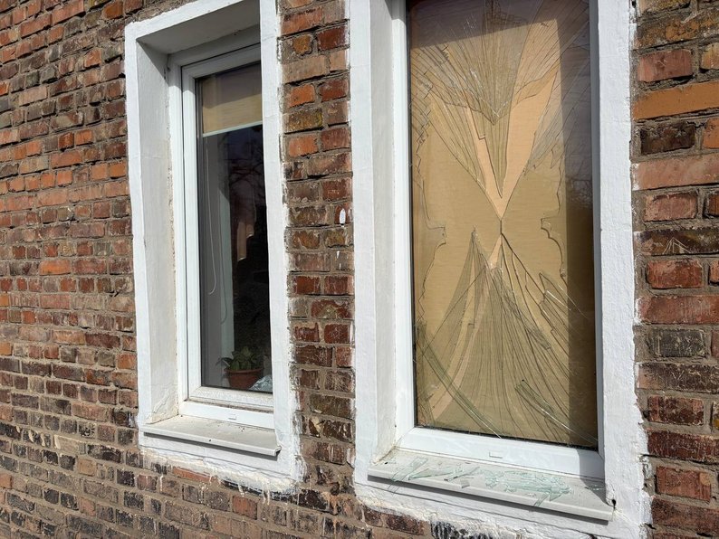 Вікна у квартирі місцевого жителя Володимира Хахули винесло вибуховою хвилею. Чоловік затулятиме їх дерев'яними щитами.