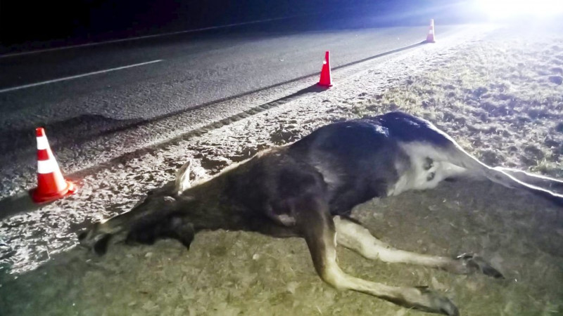 Лось, якого на смерть збив мікроавтобус на Чернігівщині 13 березня 2026 року. Держекоінспекція в Чернігівській області
