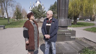 Cуспільному чоловік розповів, пам’ятник "Жертвам Чорнобиля" — єдине місце, де він зустрічається з минулим. 1986 року йому було 26. Розповів, працював водієм на підприємстві “Вінниця ГОЛОВПОСТАЧ”.