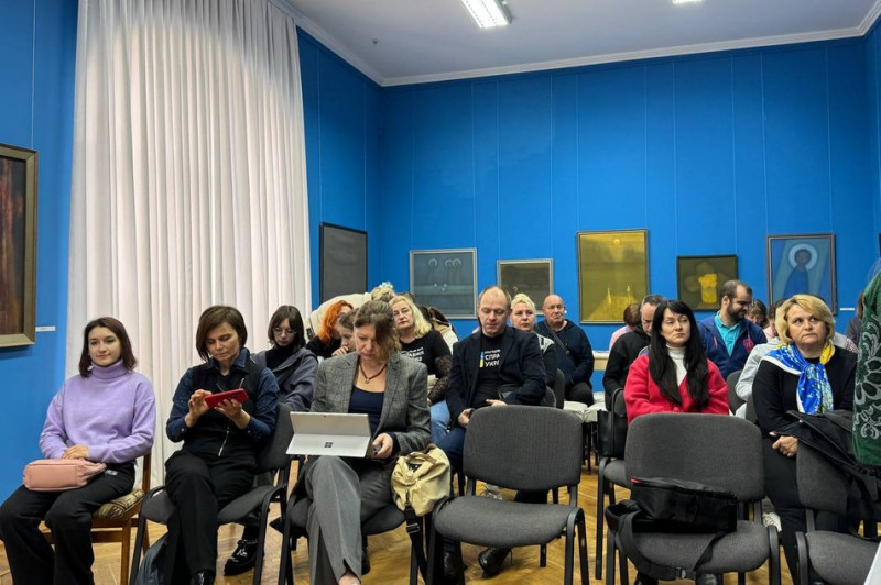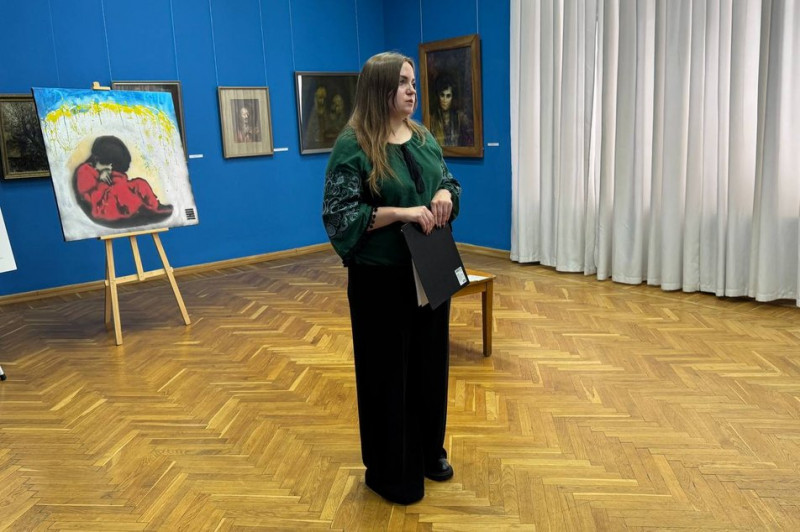 Під час презентації мистецького проєкту «Для сироти» в обласному краєзнавчому музеї, Житомир, 30 вересня 2025 рокуу. Суспільне Житомир/Ілона Касаткіна