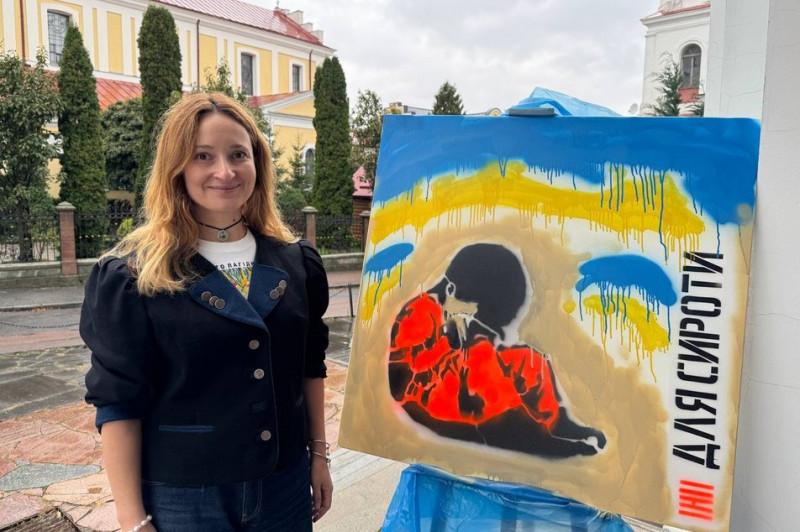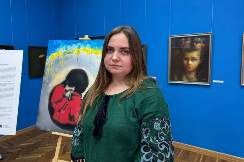 Мисткиня кримськотатарського походження відтворила картину кримського політв’язня Богдана Зізи «Сирота», Житомир, 30 вересня 2025 року. Суспільне Житомир/Ілона Касаткіна