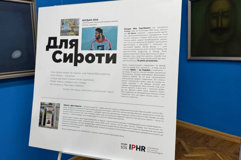 "Я стежу за ситуацією у Криму з 2014 року. Роблю документальні та мистецькі проєкти, присвячені Криму та спротиву кримчан проти російської анексії за кордоном і в Україні. Для мене дуже важливо ділитися цими історіями, показувати їх. Доля Богдана та його творчі роботи є надто показовими та яскравими. Цей проєкт, який ми назвали "Для сироти", і реалізуємо спільно із громадською організацією КримSOS" пройде також у багатьох інших містах України. Орім Житомира, це ще будуть Черкаси, Львів, Івано-Франківськ, Луцьк та інші. Ми сподіваємося, що таких міст ставатиме все більше і більше", — розповіла мисткиня.