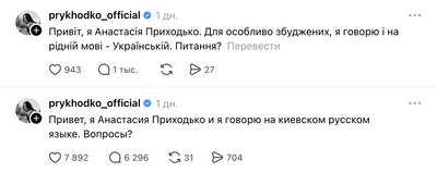У соціальній мережі Threads розпочалося обговорення доцільності концерту Анастасії Приходько у Чернівцях після того, як співачка опублікувала допис російською, зазначивши, що говорить "на київському руському язиці". Користувачі почали згадувати центр Миколайчука із закликом скасувати захід.