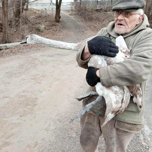 69-річний мешканець смт Кринички Віталій Васильович Барінов врятував лебедя. Птах перебував на Центральному ставку та потрапив в крижаний полон. Незважаючи на те, що лід був крихкий, він все ж таки зважився на спасіння благородної птиці.