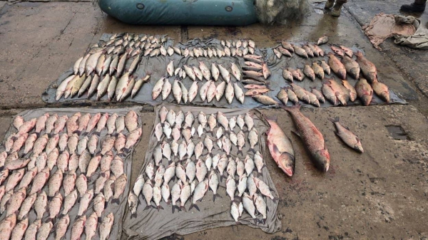 У нього виявлено 11 ліскових сіток загальною довжиною 770 метрів, а також 265 рибин різних видів: сазан, карась, окунь, щука, плітка, білий амур та товстолоб. Загальна сума завданих державі збитків становить майже 600 тисяч гривень.
