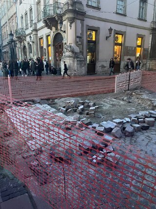 Сьогодні, 18 жовтня, на площі Ринок у Львові розпочали перекладати бруківку. Про це раніше попереджалося.