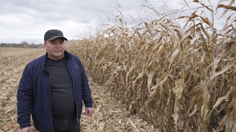 Керівник господарства Станіслав Андрійчук розповів, що кукурудза сформована добре — урожайність сягає 12–14 тонн з гектара, однак через надмірну вологість доводиться працювати лише вдень, коли підсихає ґрунт.