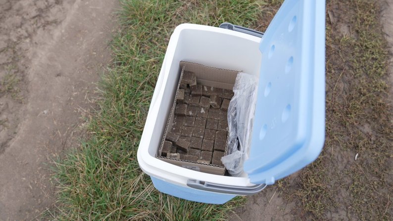 "Тут у нас такі кубики, тут є м'ясокісткове борошно, і тут є така ампула, яка із вірусом вакцини проти сказу. Тваринка має її поїсти і проковтнути ту ампулку із вакциною. Ми розкидаємо в траві, в лісосмуги, на узбіччях. Розкидаємо на посадки лісові, смуги, поля, біля нір", — розповіла завідувачка відділу Станіславчицького пункту ветеринарної медицини Оксана Мартинчик.