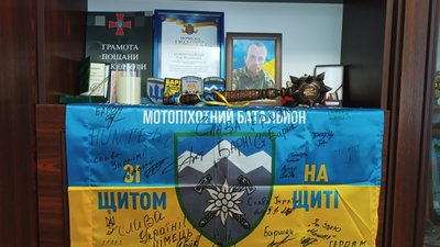 Вдома родина зберігає речі захисника. Серед них — фотографії, грамоти з роботи, військові нагороди, прапор з автографами побратимів: