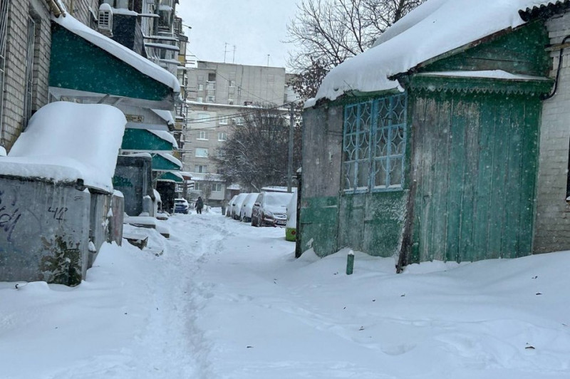 Сніг в одному з провулків. Житомир, 9 січня 2026 року. Суспільне Житомир/Тетяна Іскоростенська