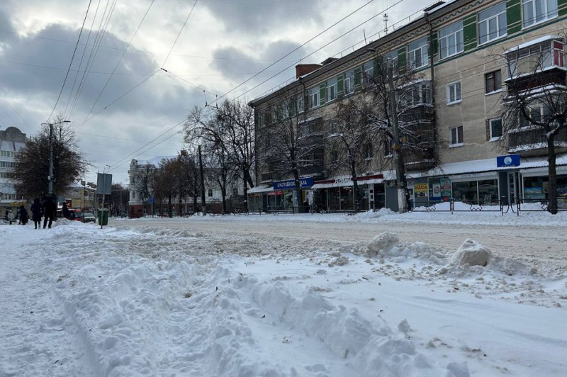 Засніжені дороги в центрі Житомира, 9 січня 2026 року. Суспільне Житомир/Надія Назарук