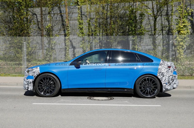 Судячи з фото, седан отримає обтічний дизайн у стилі старших електрокарів бренду. Попереду — закрита решітка з підсвіткою та фірмові фари, а силует нагадує Mercedes-Benz EQE, але виглядає більш спортивно.