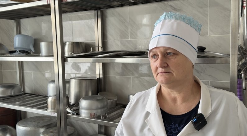“Інколи ми приходимо — світла нема. Вмикаємо ліхтарики, робимо заготовки до обіду, щоб було вже все готове. Вмикається світло — ми далі продовжуємо в штатному режимі працювати”, — пояснює шеф-кухарка.