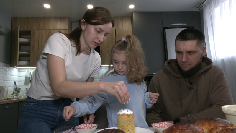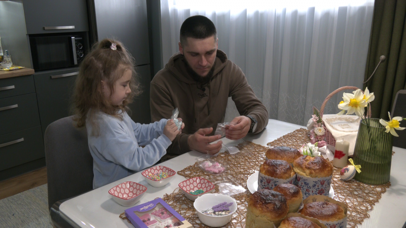 Дмитро Савівський разом зі сім’єю прикрашає паску, Рівне, 10 квітня 2026 року. Суспільне Рівне