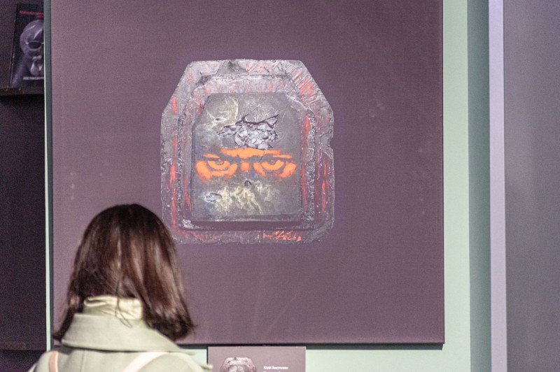 Юрій Вакуленко перетворює прострелені бронеплити на сакральні образи пам’яті, віри й спротиву, надаючи їм лаконічної, метафоричної форми з потужною національною символікою.