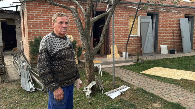 "Пробита була труба газова, газ горів. І на даху також полум’я було. Відразу перекрив газ, загасив полум’я. У домі всі вікна вилетіли, тераса була засклена. Дах, сарай — те, що постраждало найбільше. У домі десь 40% даху розкрито. Вікна тільки позабивали та плівкою затягли на даху. Вчора сміття три машини великі вивезли", — розповів місцевий житель Леонід Каплуновський.