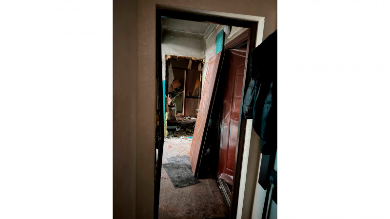 Наразі у квартирі жінки зруйновані двері та немає вікон (станом на 26 грудня 11:30, — ред.).