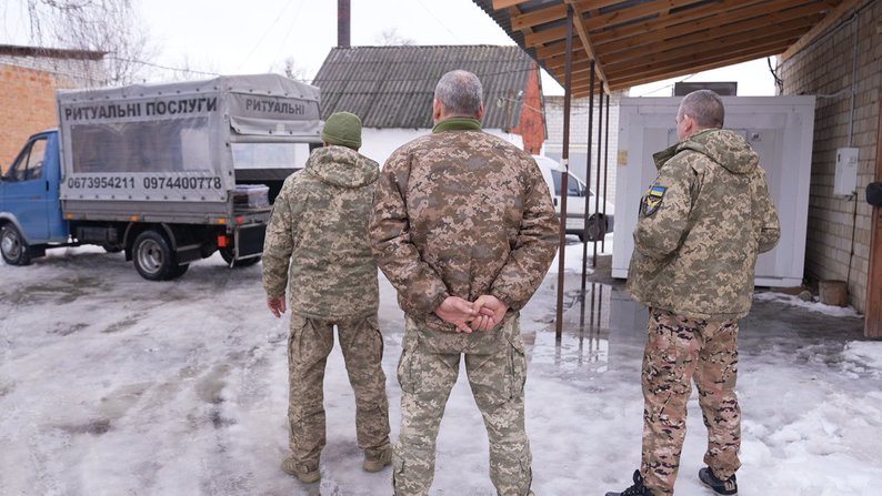 Військові стоять біля паталого-анатомічного відділення. Суспільне Вінниця