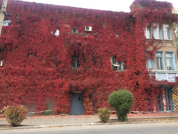 Фасад одного из павлоградских домов на 55-м микрорайоне так густо обвит плющом, что может претендовать на самый зеленый во всей Днепропетровщине.