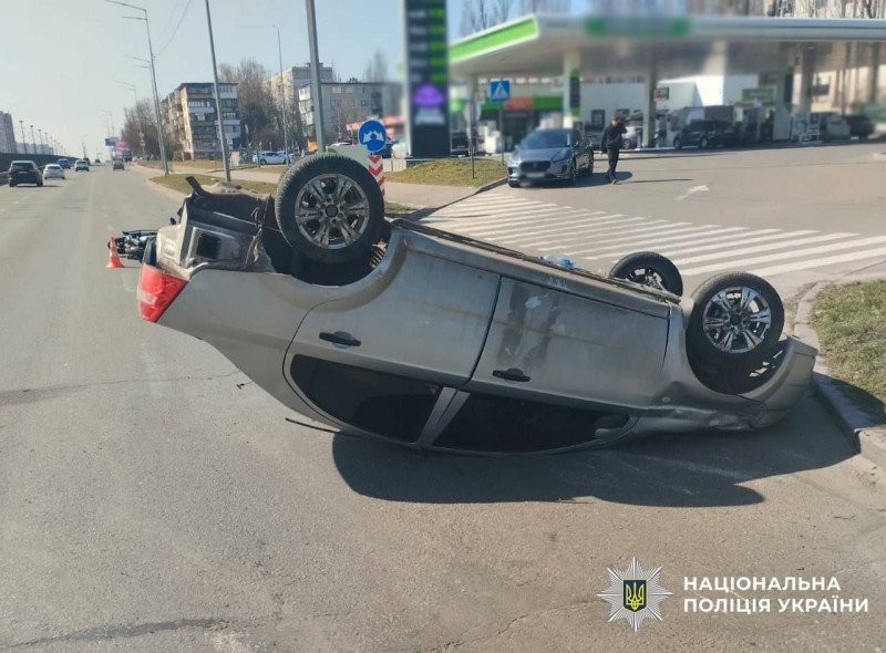 Водій легковика був напідпитку й не впорався з управління та наїхав на хлопця на електроскутері — ДПТ з перевертанням сталось на Борщагівці.