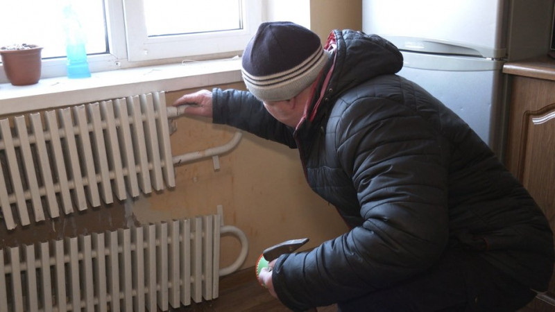"Батарея є, вона потекла тут. Під заміну батарея, сказали, що будуть міняти. Таке саме стояк гарячої води. Кран замерз — треба міняти. В спальні теж батарею розірвало, в одному місці потік, тут розірвало, то також мають поміняти", — говорить Василь Шкаб.