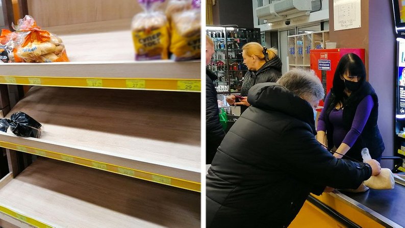 У супермаркетах люди розкуповували хліб, воду та продукти тривалого зберігання.