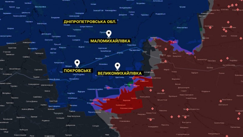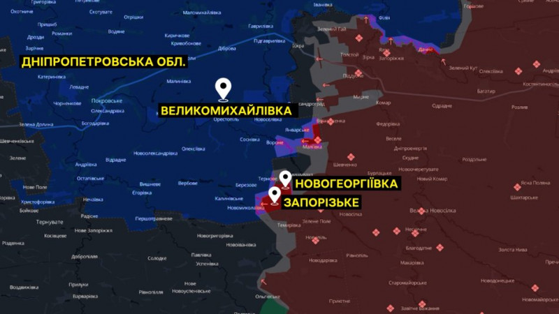 Ситуація на фронті поблизу Великомихайлівки на Дніпропетровщині за даними DeepState. Суспільне Дніпро