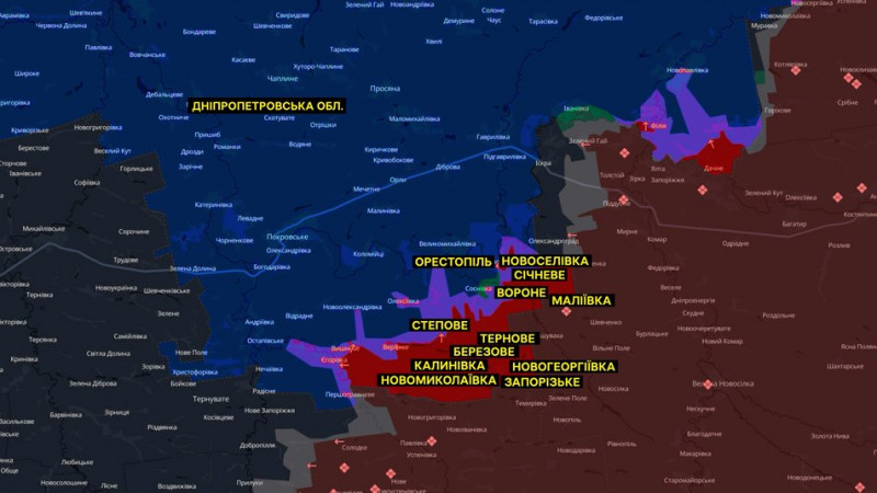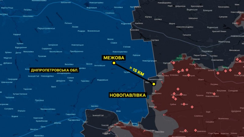 Ситуація на фронті поблизу Новопавлівки на Дніпропетровщині за даними DeepState. Суспільне Дніпро