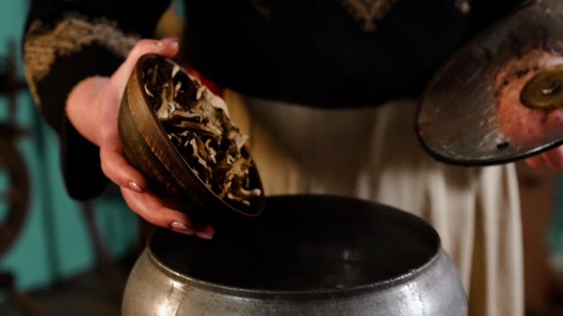 За словами господині, основні інгредієнти юшки — це сушена риба та гриби. Для смаку додають ще картоплю, моркву, цибулю, спеції.