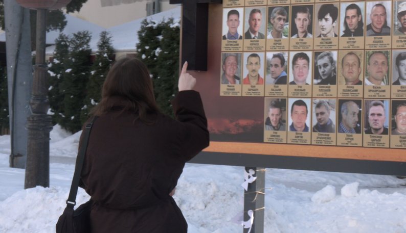 Ірина біля пам’ятного фотостенду “Герої Небесної Сотні” у Луцьку. Суспільне Луцьк