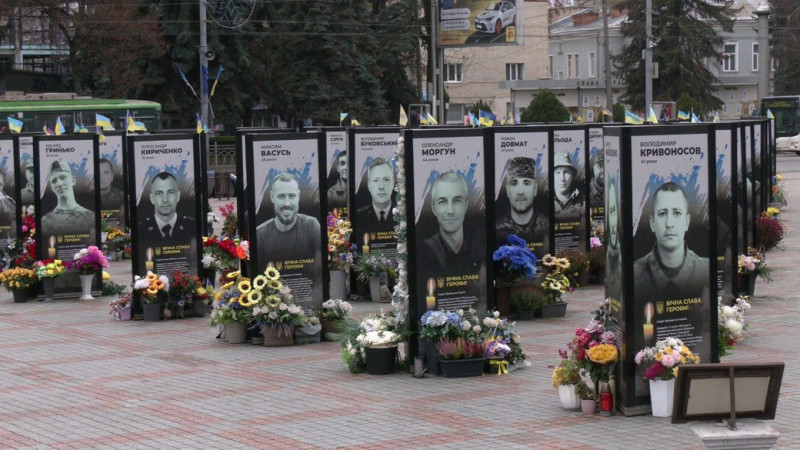 Портрети загиблих військових у центрі Рівного, 3 грудня 2025 року. Суспільне Рівне