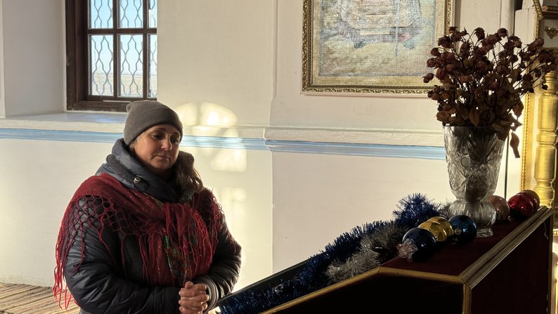 На перше богослужіння прийшли, за підрахунками Суспільного, 20 парафіян. Серед них — Марія Погоріляк.