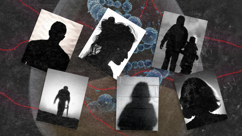 Колаж із зображенням абстрактних силуетів зниклих безвісти на фоні ДНК. Getty Images