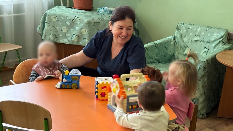 Медсестра Анжела Рубан з наймолодшими вихованцями центру. Суспільне Кропивницький