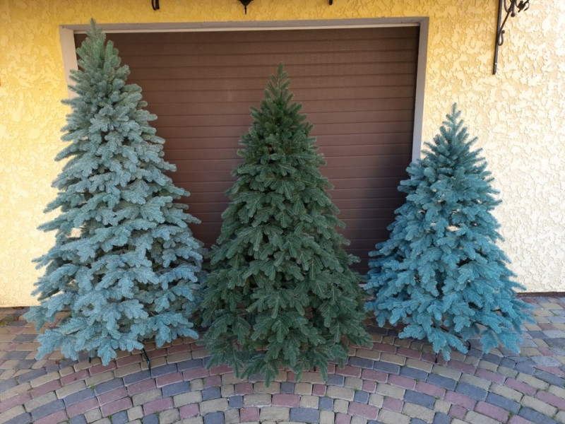 Литі ялинки у різних кольорах та розмірах. Фото надані представницею українського виробника штучних ялинок Христиною