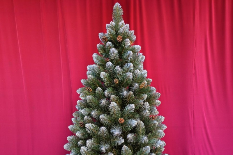 Ялинка, виготовлена з ПВХ та прикрашена шишками та штучним снігом. Фото надані представницею українського виробника штучних ялинок Христиною
