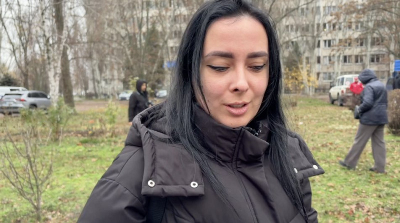 Оксана мешкає на третьому поверсі будинку, який пошкодило через ракетну атаку. Жінка розповіла: встигла вийти за дві хвилини до удару.