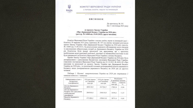 Висновок до проєкту Закону України «Про Державний бюджет України на 2026 рік» Комітет з питань освіти, науки та інновацій