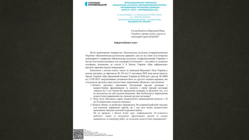 Інформаційний запит Суспільного до Сергія Бабака. Суспільне Кропивницький