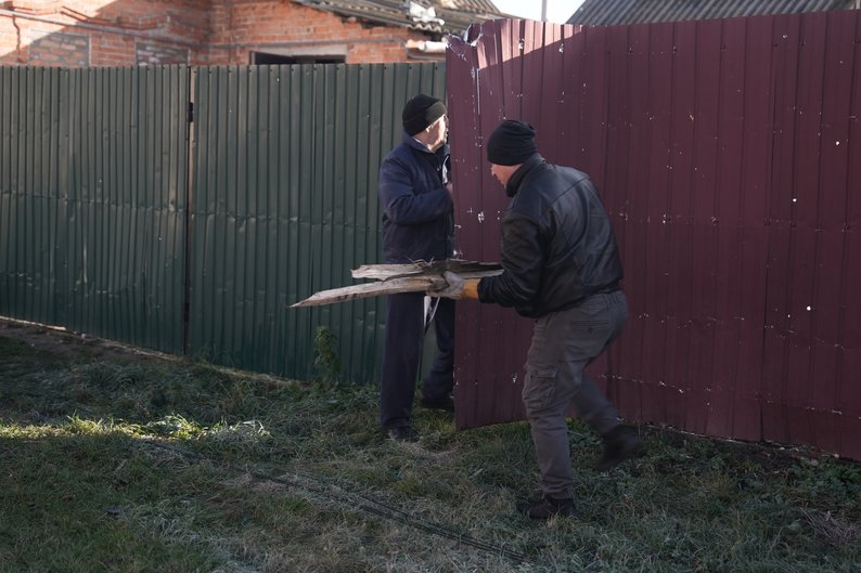 "Ще п'ять метрів — і ми б горіли", — розповіла Оксана Колісніченко. Її домогосподарство пошкоджене: загорілися гараж, сараї, вибиті вікна. Коли почалася атака, родина була вдома — спали. Після третього влучання, сказала жінка, вибігли з будинку, взявши з собою тільки документи.