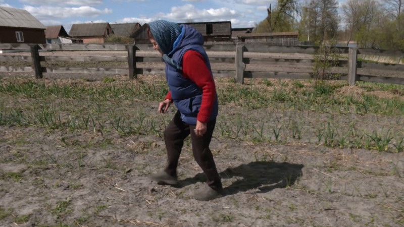 69-річна Галина Міркевич показала, що зійшло на її городі. Жінка усе життя живе у Великих Озерах Дубровицької громади. Вона розповіла, що після аварії на Чорнобильській атомній електростанції село було в зоні обов'язкового відселення через сильне радіаційне забруднення: