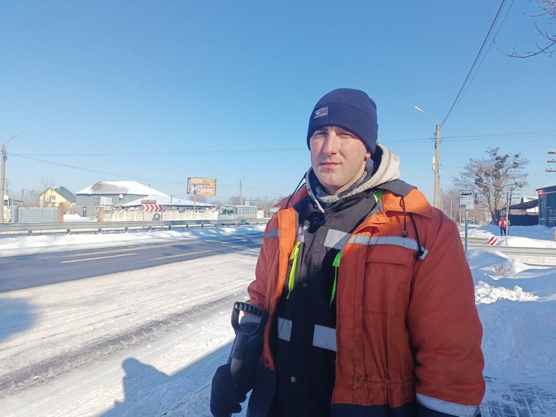 "Років п’ять не було такої зими. Заступив на сутки і сиплеш, доки сил хватає. Техніку встигаємо ремонтувати, ламаємося, робимо на ходу. Маршрут може бути не один той самий. Часом на один напрямок два-три рази виїжджаємо: чи не догледів, чи люди дзвонять. Залежить ще від народу, часом люди дають дорогу об’їхати на добрий лад, а часом… Робота тяжка: не присісти, нічого. Цілий день як білка: приїхав, загрузився, поїхав", — сказав чоловік.