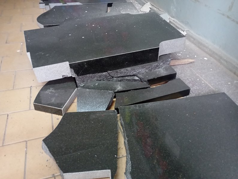 Пошкоджень зазнало і приміщення ритуальної служби — там розбиті пам'ятники.