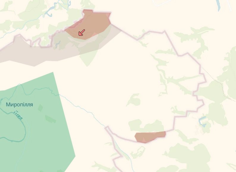 Ще на мапі з'явилася нова "червона" зона між Миропіллям та Кіндратівкою.