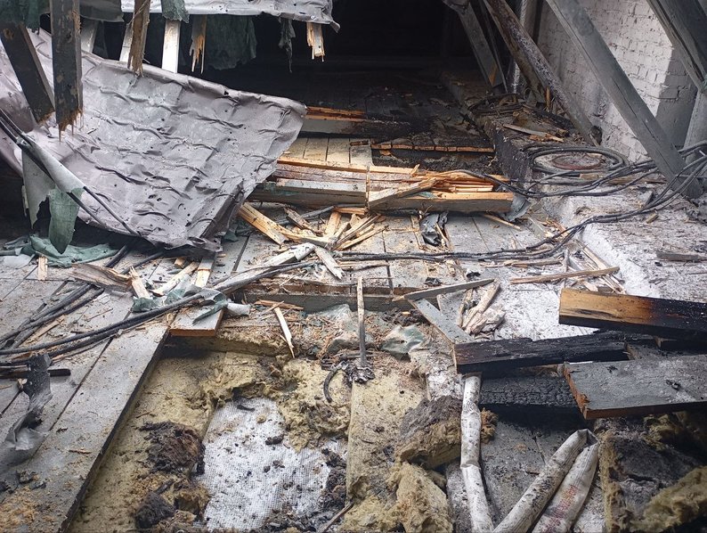 "Волонтери прибули на місце, аби як тільки це стане можливим закрити пошкоджений дах", — розповів координатор Сумського осередку Добробату Олексій Клюєв.