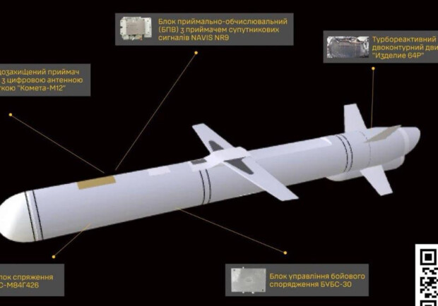 ГУР повідомляє, що супутникова навігаційна система, чи не вперше для крилатих ракет противника, представлена поєднанням виробів двох різних російських компаній — завадозахищеного приймача супутникового сигналу з цифровою антенною решіткою “Комета-м12” виробництва “Вніір-прогрес” та приймально-обчислювального блоку виробництва “КБ Навіс”, створеного на базі приймача NAVIS NR9. Для їх інтеграції використовується блок спряження виробництва АНПП “Темп-Авіа”, відомого виготовленням польотних контролерів для керованих авіабомб.