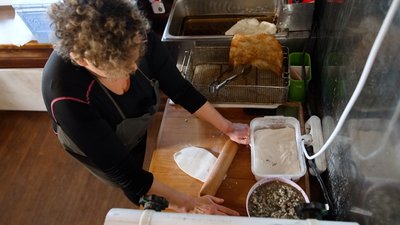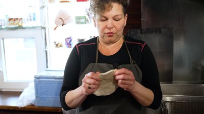 Цього разу пані Таміла розкрила секрет чебуреків, які прийшлися до смаку місцевим за хрумке тісто та соковиту начинку. Рецепт тіста господиня тримає в секреті. А от щодо начинки — ділиться тонкощами приготування.