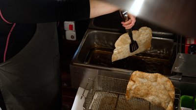 "Коли робимо сирну начинку, то до звичайного твердого сиру обов’язково треба додати моцарелу. Вона добре плавиться і тягнеться, — поділилася секретом господиня. — Головне у цьому процесі — не покласти забагато м’ясної чи сирної начинки, щоб під час смаження чебурек не розірвався".
