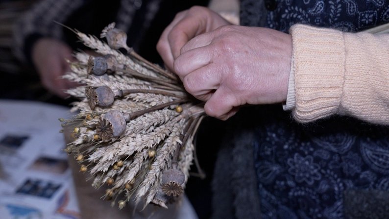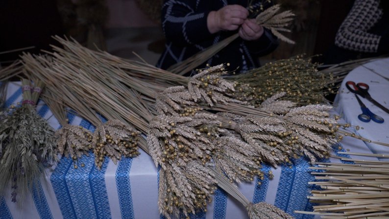 "Спочатку ми збираємо колосочки всілякі. І льон, і пшеницю, і жито, і овес. Складаємо по 7, так як в тижні сім днів. Далі по 12, потім по 30, і робимо дідушки такі".